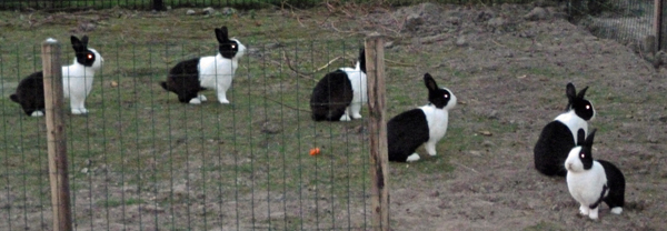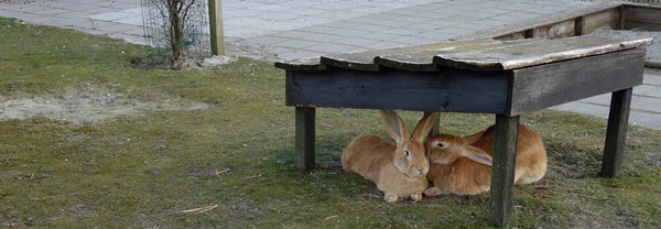 Op het konijnenveld vindt u diverse konijnensoorten zoals: Vlaamse reus, Hollandertje, Franse hangoor en de Thrianta.