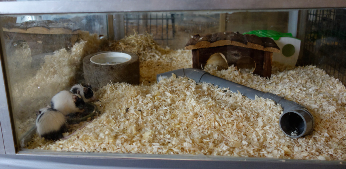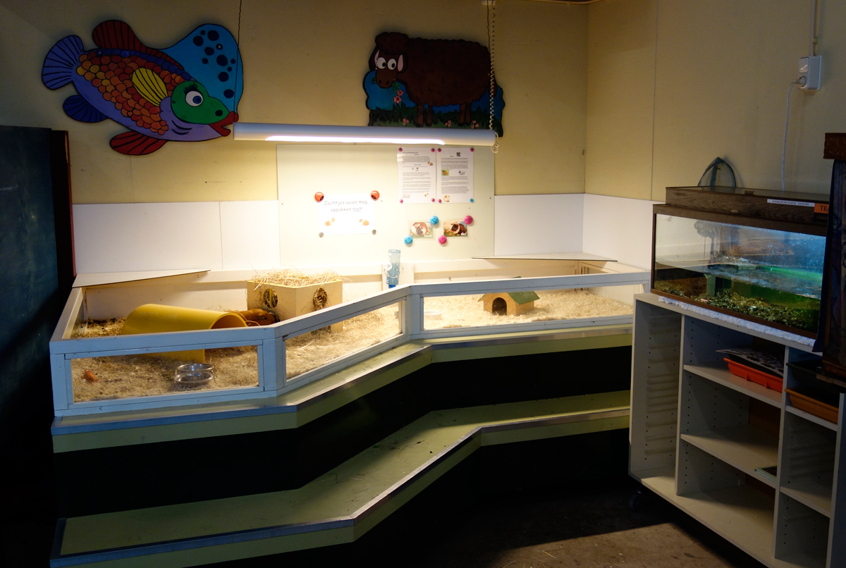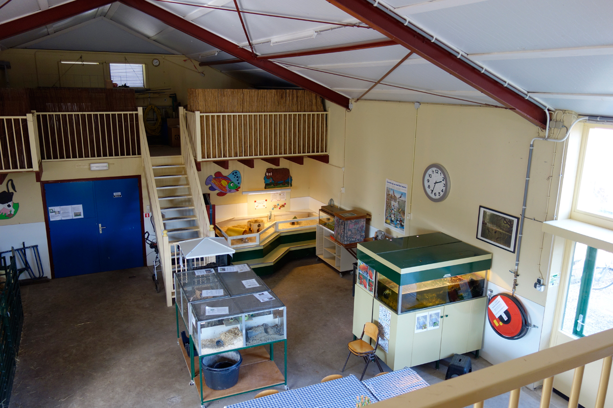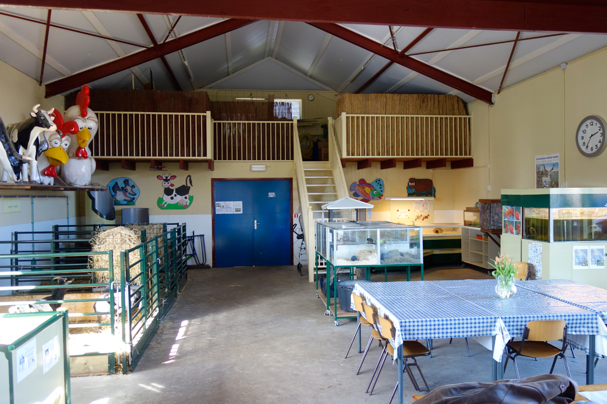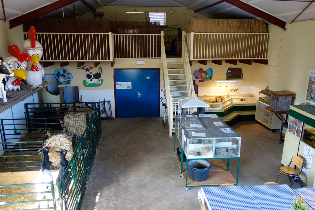 In de boerderijschuur bevinden zich: cavia’s, kleine konijnsoorten, ratten, gerbils, degoe’s, muizen, hamsters, een baardagame, schildpadden, goudvissen, wandelende takken, een kast met prachtige opgezette vogels en andere dieren en een kast met eieren van velerlei vogelsoorten.